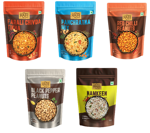 Enjoy the perfect fasting snack collection with the Rathi Gold Farali Mix Combo Pack! This pack of five includes Rathi Gold Farali Chivda Tikha & Rathi Gold Farali Chivda Meetha, Rathi Gold Red Chilli Peanuts, Rathi Gold Black Pepper Peanuts, and Rathi Gold Panchratna Mix—each crafted for taste and tradition. Light, crunchy, and flavorful, these namkeens make fasting deliciously exciting. A must-have for every upvas!