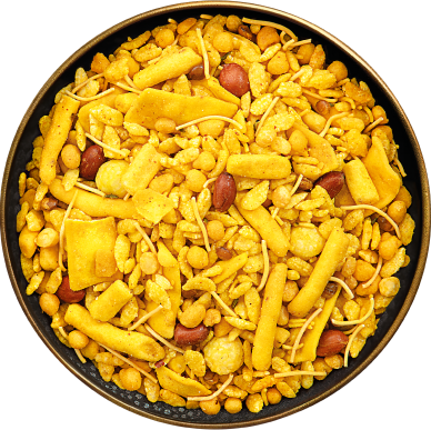 Gram Pulse Flour, Maize Starch, Gram Pluse, Lentil, Rice Flakes, Sabudana, Peanuts, Sugar Powder, Edible Vegetable Oil (Ground Nut, Palmolein, Cotton Seed, Corn), Raisins, Spices & Condiments {Turmeric Powder, Fennel, Black Salt, Jeeravan, Asafoetida, Cumin Seeds, Carom Seeds, Chilli Powder, Black Pepper powder, Cinnamon, Star Anise, Caraway Seed, Clove Powder, Black Cardamom, Stone Flower, Bay Leaves, Long Pepper, Nutmeg, Mace, Ceylon Ironwood} Iodized Salt, Acidity regulator (INS 330), Raising Agent (E 500(ii)).